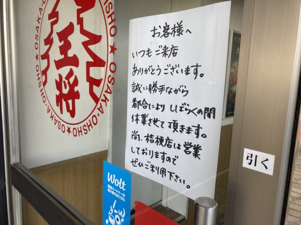 それより個人的に問題なのは通り側にある休業中の大阪王将。はやく再開してあの天津飯と餃子を食わせてほしいんですけどね。