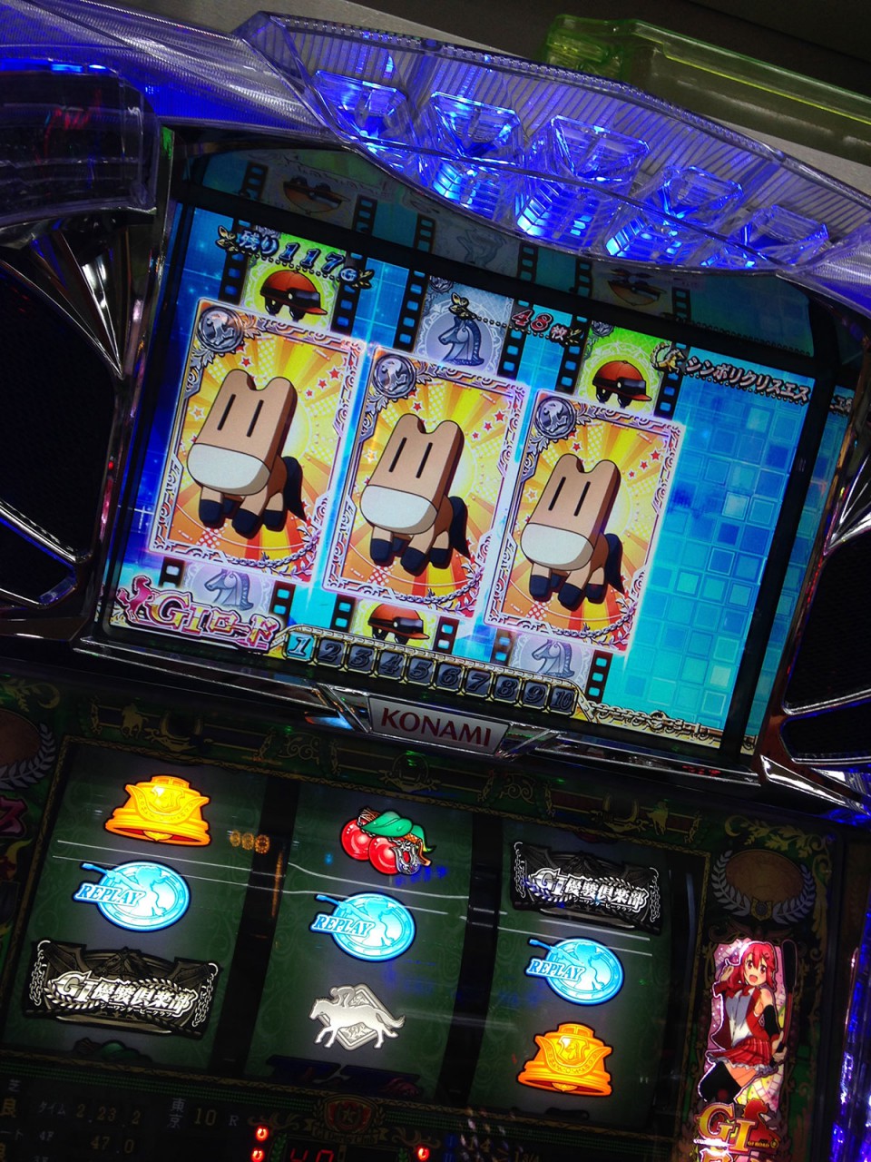 そんな中で昨年後半から楽しんで打てているのがKPEの「G1優駿倶楽部」だけというような状況。馬が好きっていう個人的な事情もありますけど、本当によく出来た台だと。出玉面では2枚機ってことで増えるスピードがゆっくりでなんともはやという感はあるのですが、今、台の中身がどんな状況なのかをチラ見せしてくれつつ、己のヒキでどうにかするゲーム性は私にとって垂涎モノというかね。